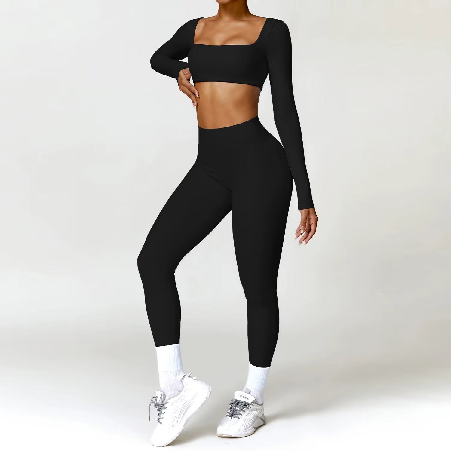 2-teiliges Damen-Yoga-Set – Schnell trocknender Sportanzug für Fitnessstudio, Training und Laufen mit langärmeligem Sportoberteil