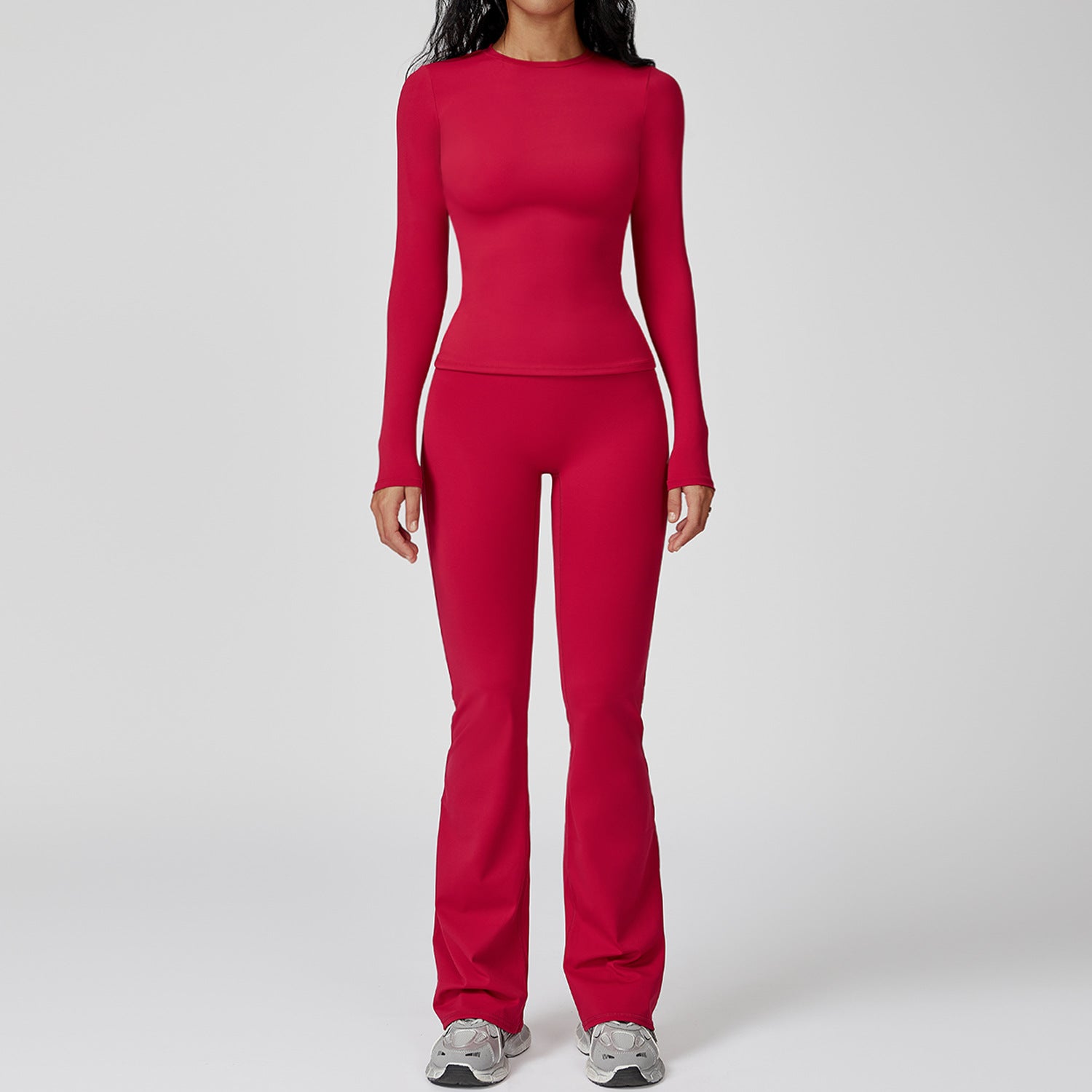 Gefertigt aus atmungsaktivem, elastischem und hautfreundlichem Material, garantiert dieses Trainingsset maximale Bewegungsfreiheit und ein angenehmes Tragegefühl – selbst bei intensiven Workouts. Das zeitlose Design unterstreicht die Silhouette und macht dieses Yoga-Set zu einem stilvollen Begleiter, sowohl im Fitnessstudio als auch im Alltag.